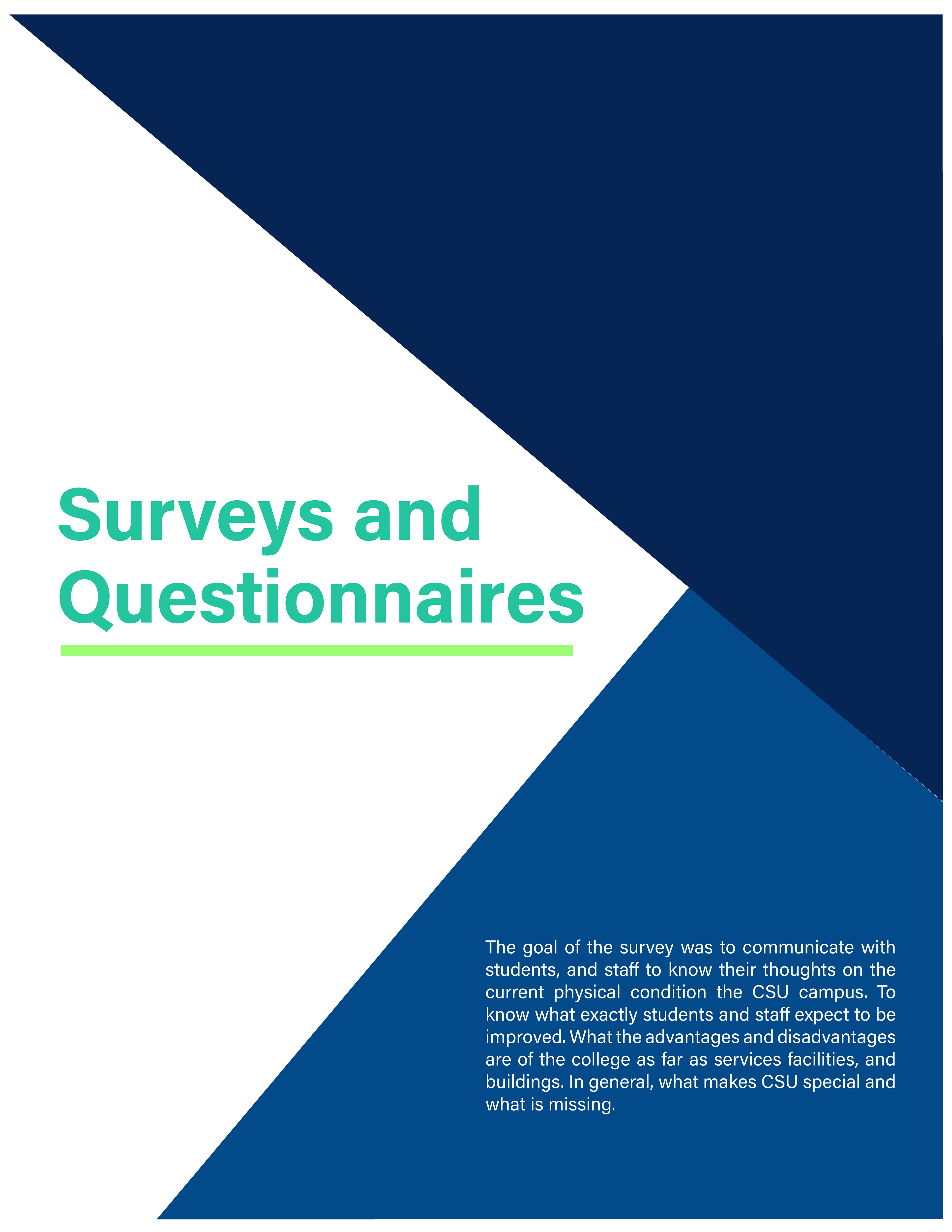 The questions pertain to the visual appeal of CSU’s campus. Specifically what needs improvement or what’s missing, what makes it special, and services available. Directed at students and faculty.